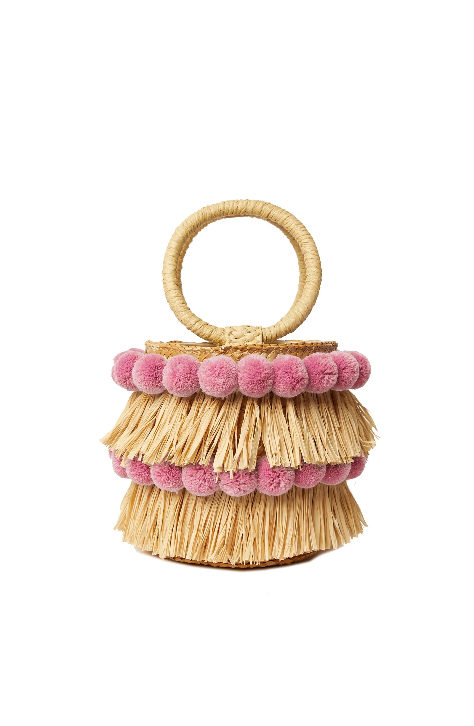 A summertime essential that will liven up any outfit. The straw fringe and playful pompoms are your newest accessory for any day to night summer parties. Featuring a miniature sized bucket bag that has linen lining and an interior pocket. Dress your outfit up or down with this one-of-a-kind staple. Wear it with a flowy dress or a pair of denim shorts. Its beautiful construction and unique pom-pom design is one you don't want to live without.
