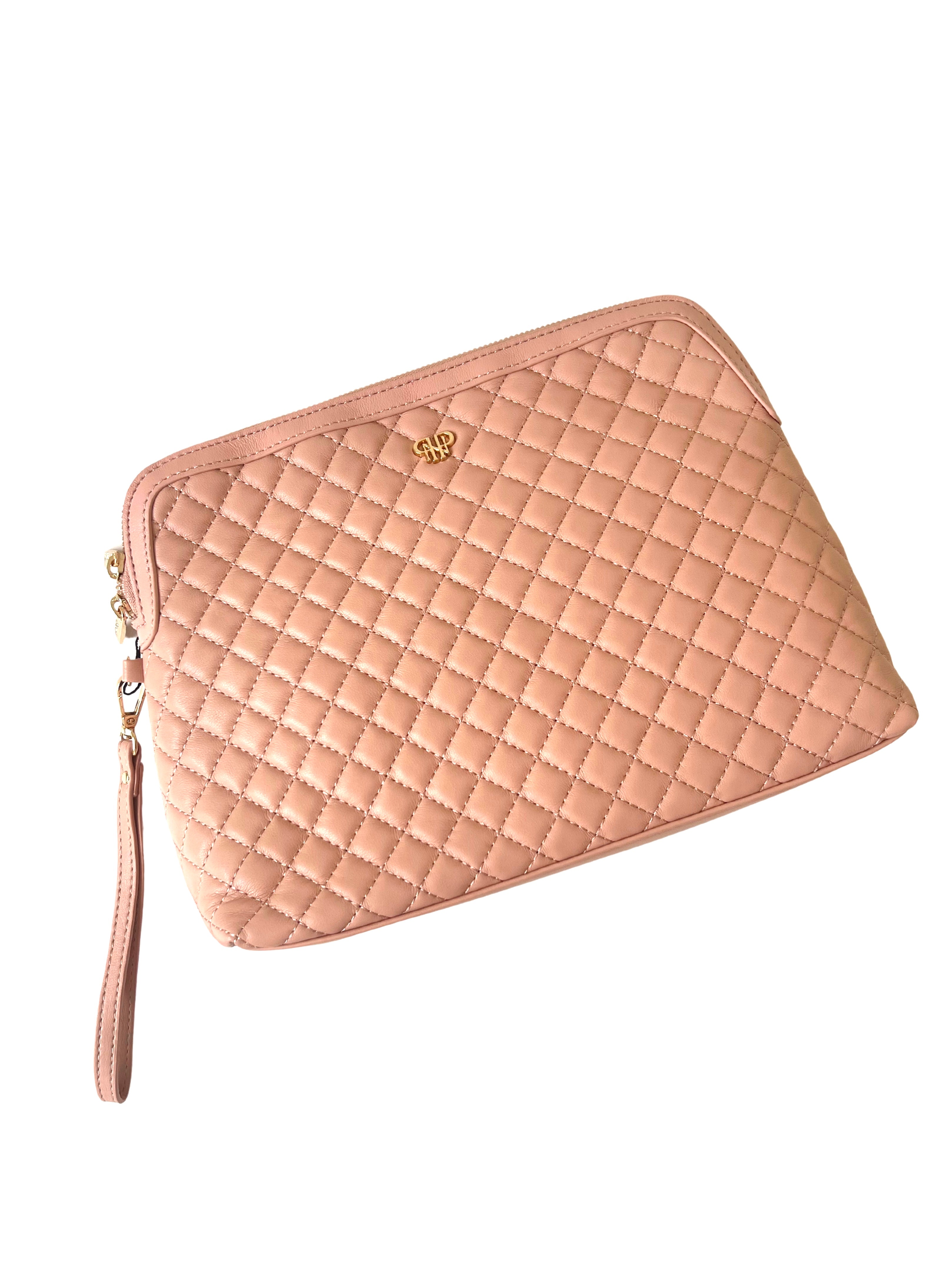 Introducing the PurseN Carryall Pouch, your new favorite travel companion! This organizer is perfect for last minute trips, with a zippered divider to keep your essentials in place, 4 interior pockets for smaller items, and a detachable wristlet. Don't leave home without it - the convenient and stylish solution for all your must-have items.