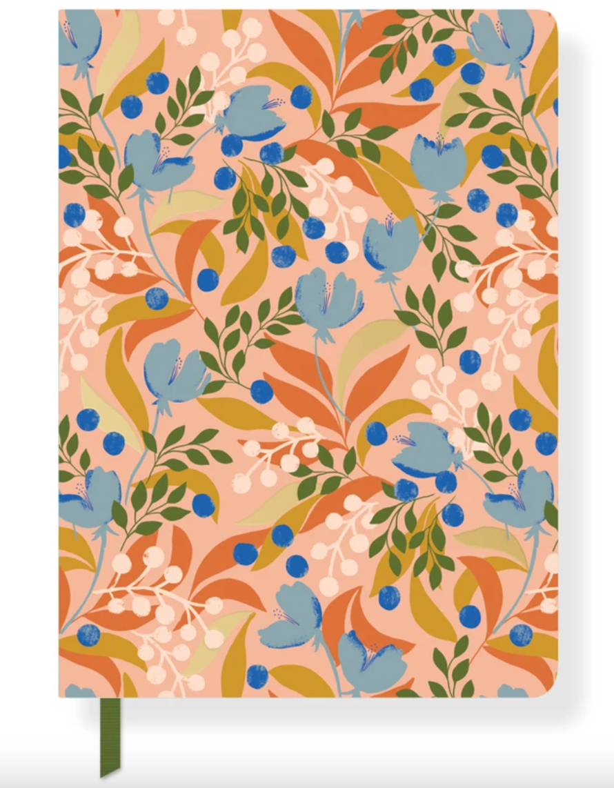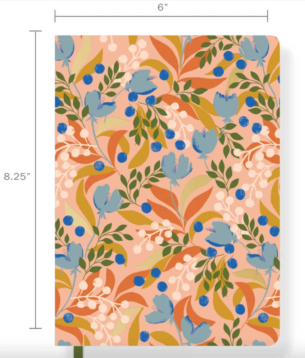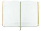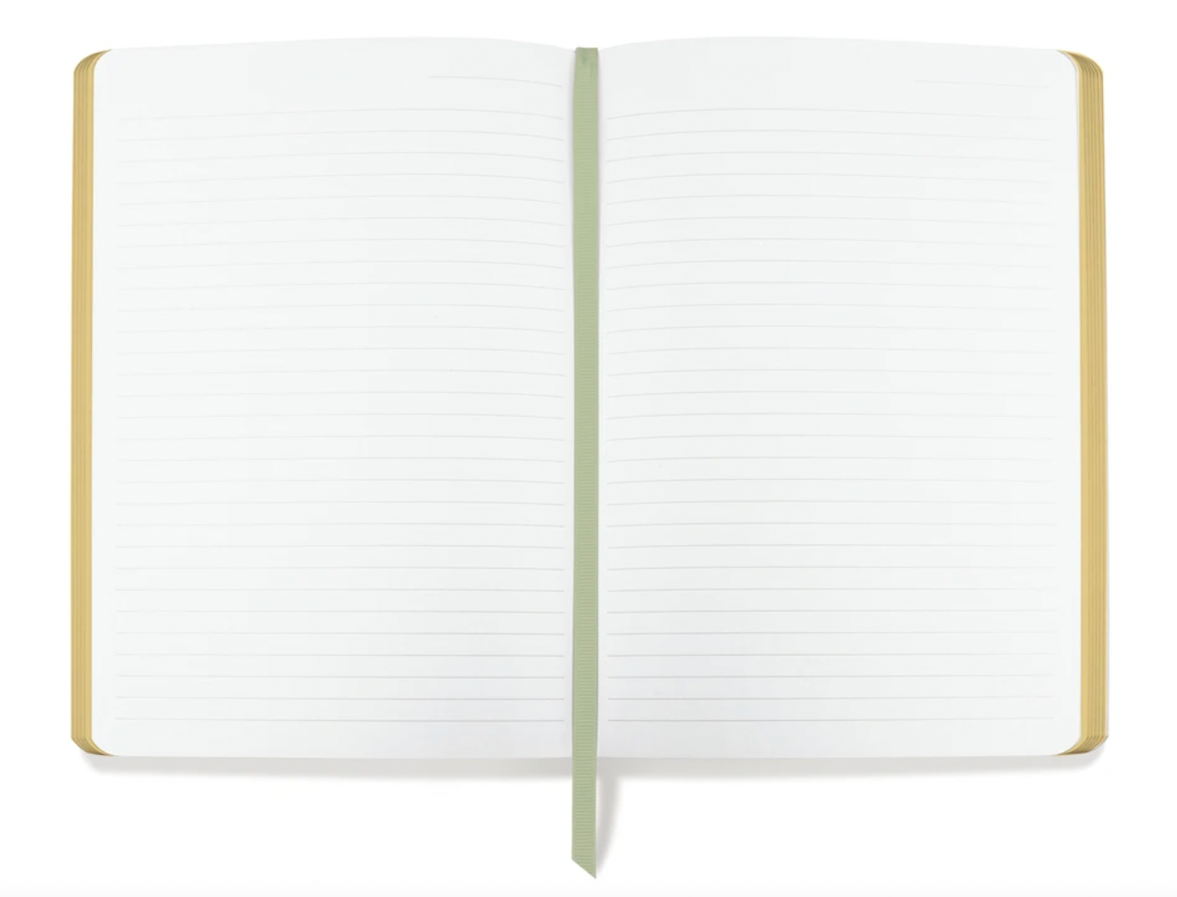 Journal with flexible paper cover, metallic gold art, and gold foil gilded edges.