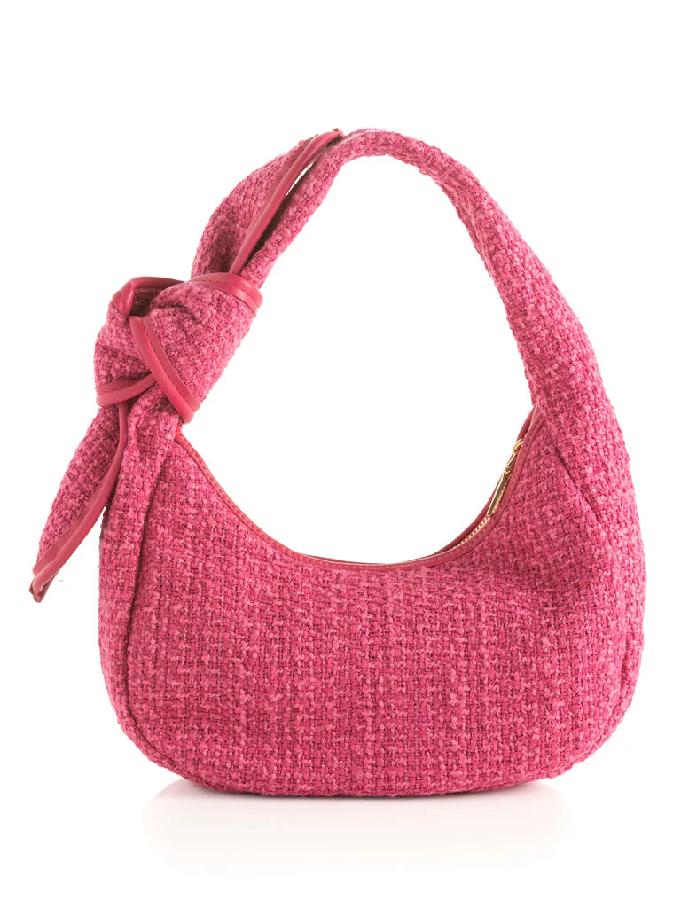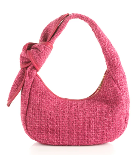 Add a chic update to your winter handbag collection with Shiraleah’s Billie Mini Hobo. Made from trendy textured boucle fabric in a classic black color, the bag's unique top handle silhouette features a chic knot detail. Pair with matching items from the Billie Collection or other items from Shiraleah to complete your look!