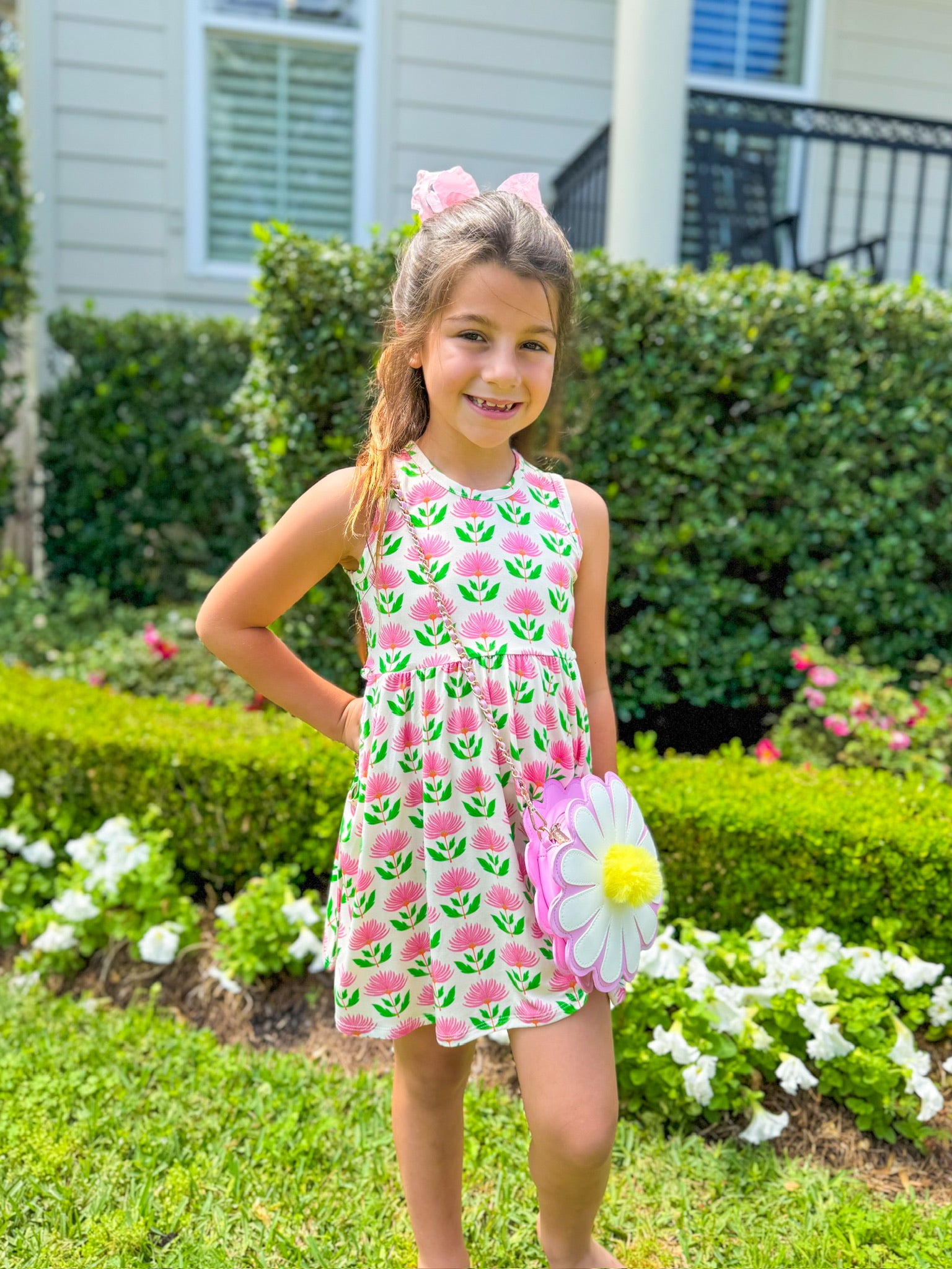 Pink Block Flower S/L Dress