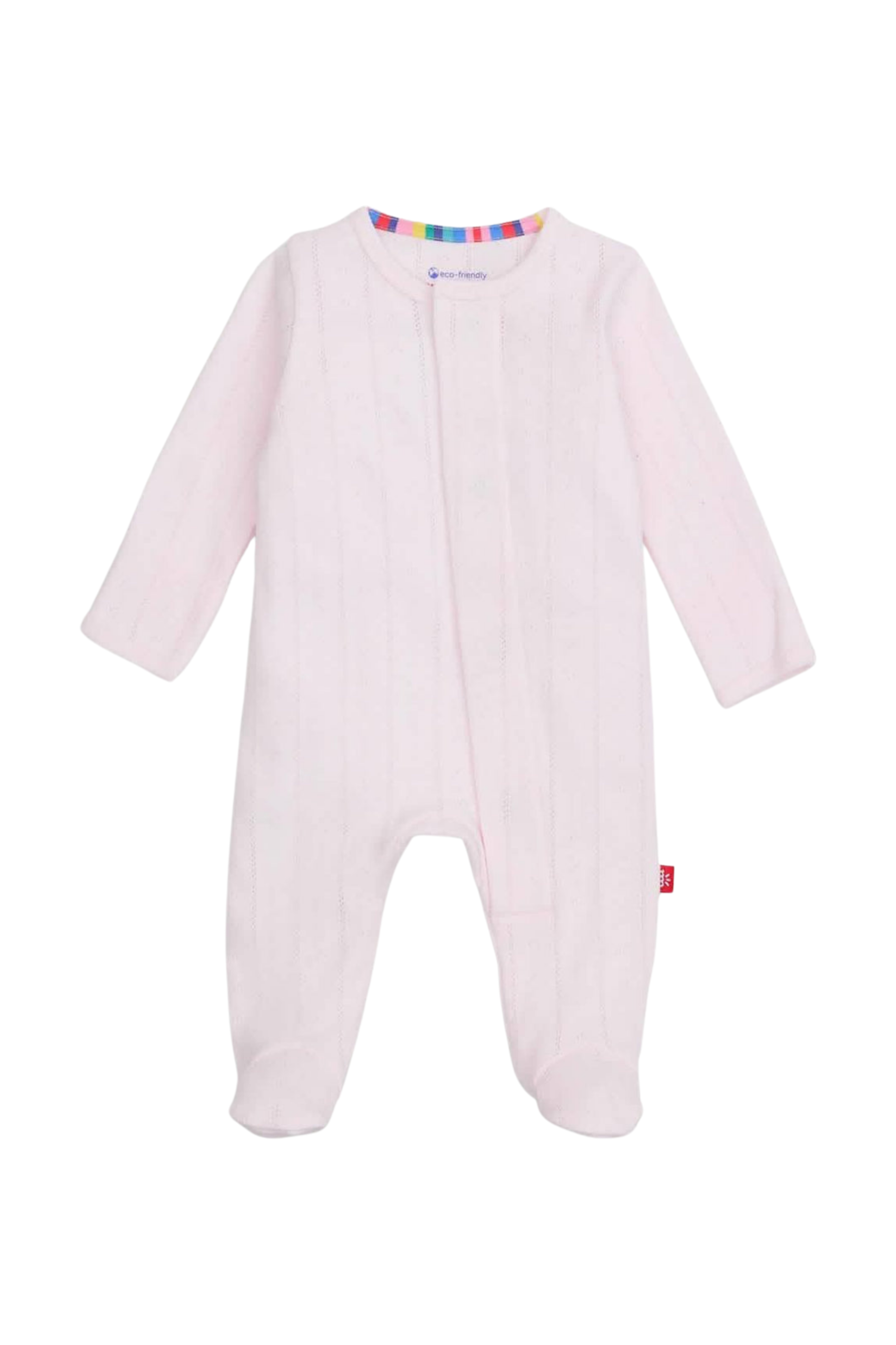 Our modal Magnetic Footie, designed with magnetic closures, is a quick and quiet lifesaver for all-day and middle-of-the-night diaper changes—that's up to 12 times a day (!). Made from sustainable modal, it's a silky-soft and temperature-regulating sleeper to keep your little one comfy from head to toe.