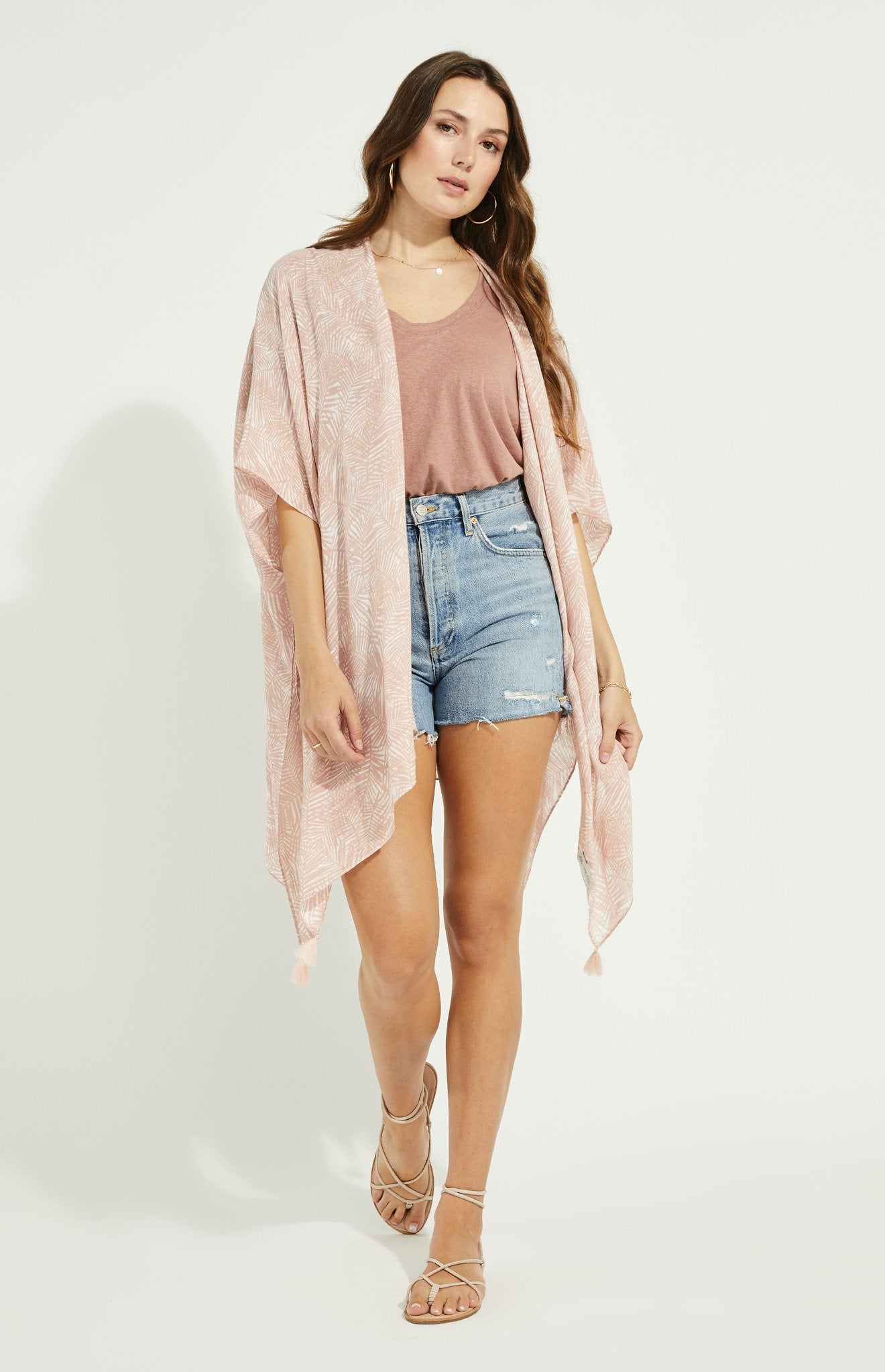The Ledger is made of EcoVero viscose and features tassel detailing and a subtle palm print designed in house. Wear it as a beach cover-up or as a lightweight layering piece all season long.