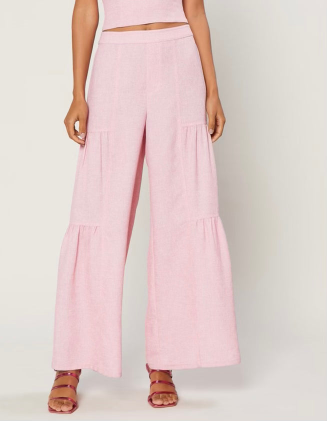 Pink Tiered Wide Leg Pants