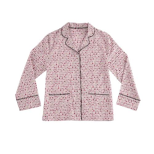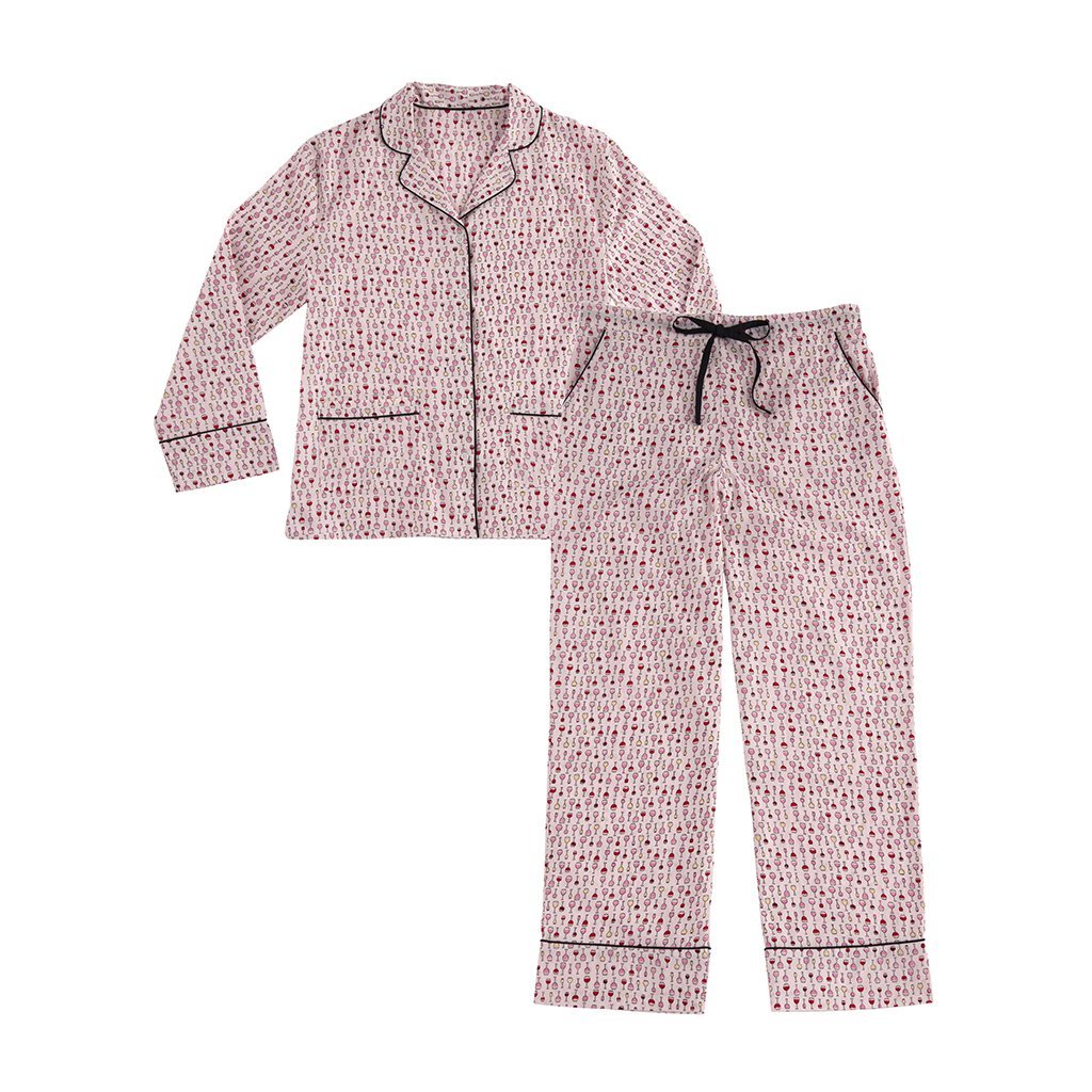 Nothing is better than slipping into the Hope PJ set before a blissful night’s sleep. This set features a lively wine glass print upon a blush background, and black detailing along the lapels, pockets, and hemline which makes it the perfect set for every wine lover. Designed with comfort in mind, this set is made from cotton, features a drawstring waistline, and packaged ribbon wrapped, making it the perfect gift option.