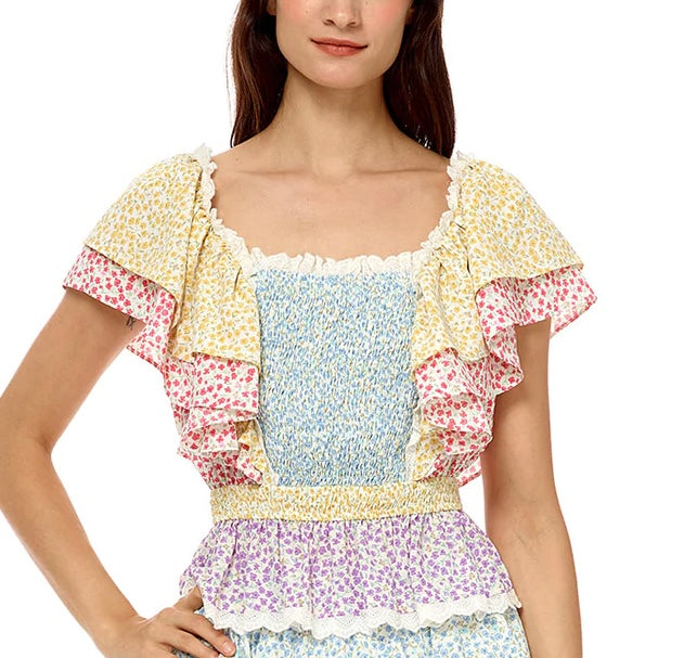 Print Mixed Ruffle Top