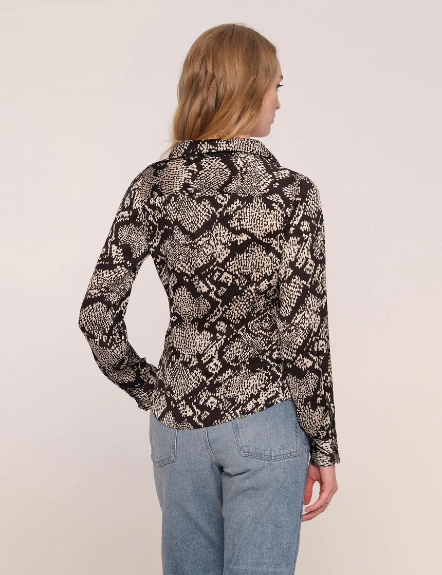 The Danes Top is cut from silky satin and features a wrap bodice with front twist detail. It's perfect for a day in the office or an impromptu Zoom call.