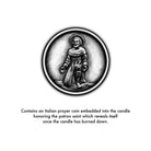 Each candle comes with a prayer to the patron saint, holy oil as part of the wax, and a prayer coin embedded into the candle. Before the first lighting, read out loud the prayer to the patron saint, then light the candle. Once the wax has burned all the way down after many uses, remove the coin at the bottom and keep it in your wallet, purse, or car - or bury it in your yard as a way of blessing the entire household.