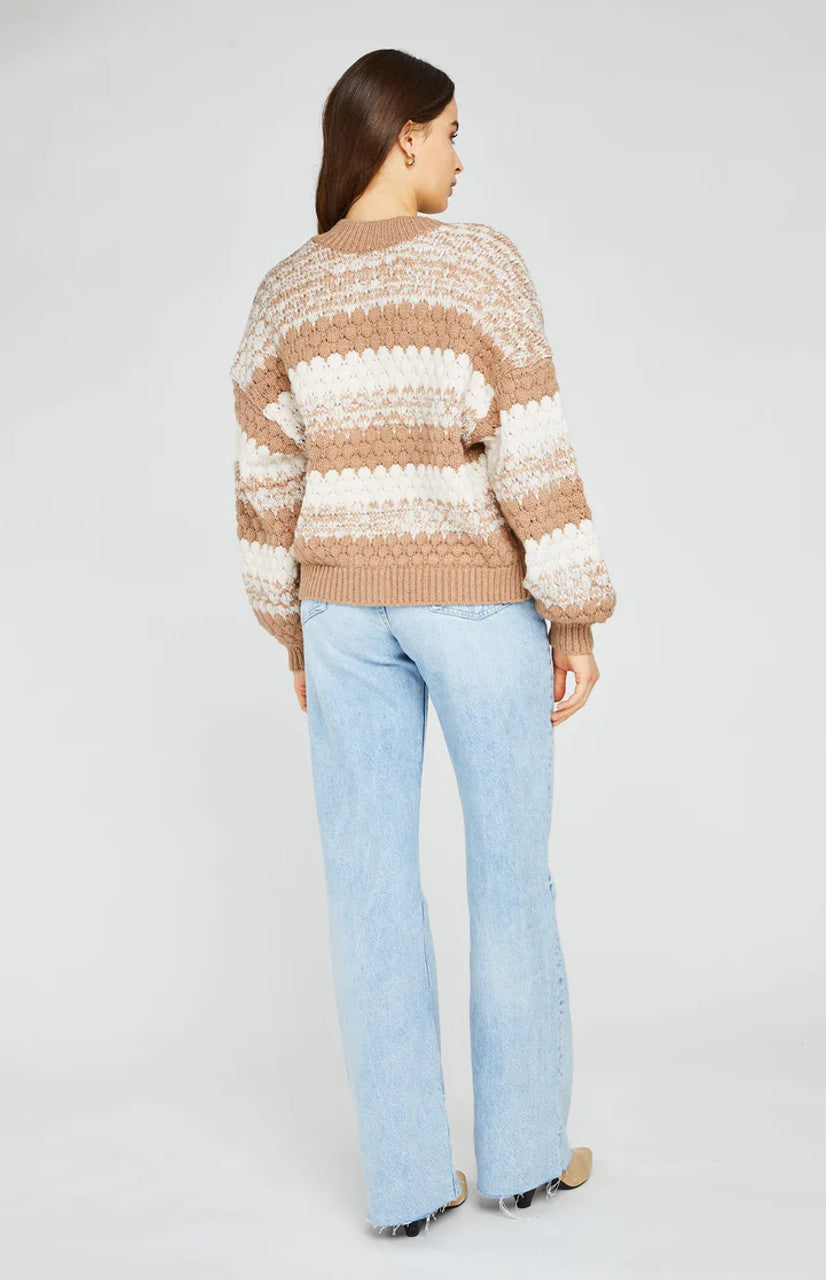 The Cosmo cardigan is made of a soft yarn with a cozy feel. Features include a novelty stitch pattern that gives the cardigan a unique textured stripe effect.
