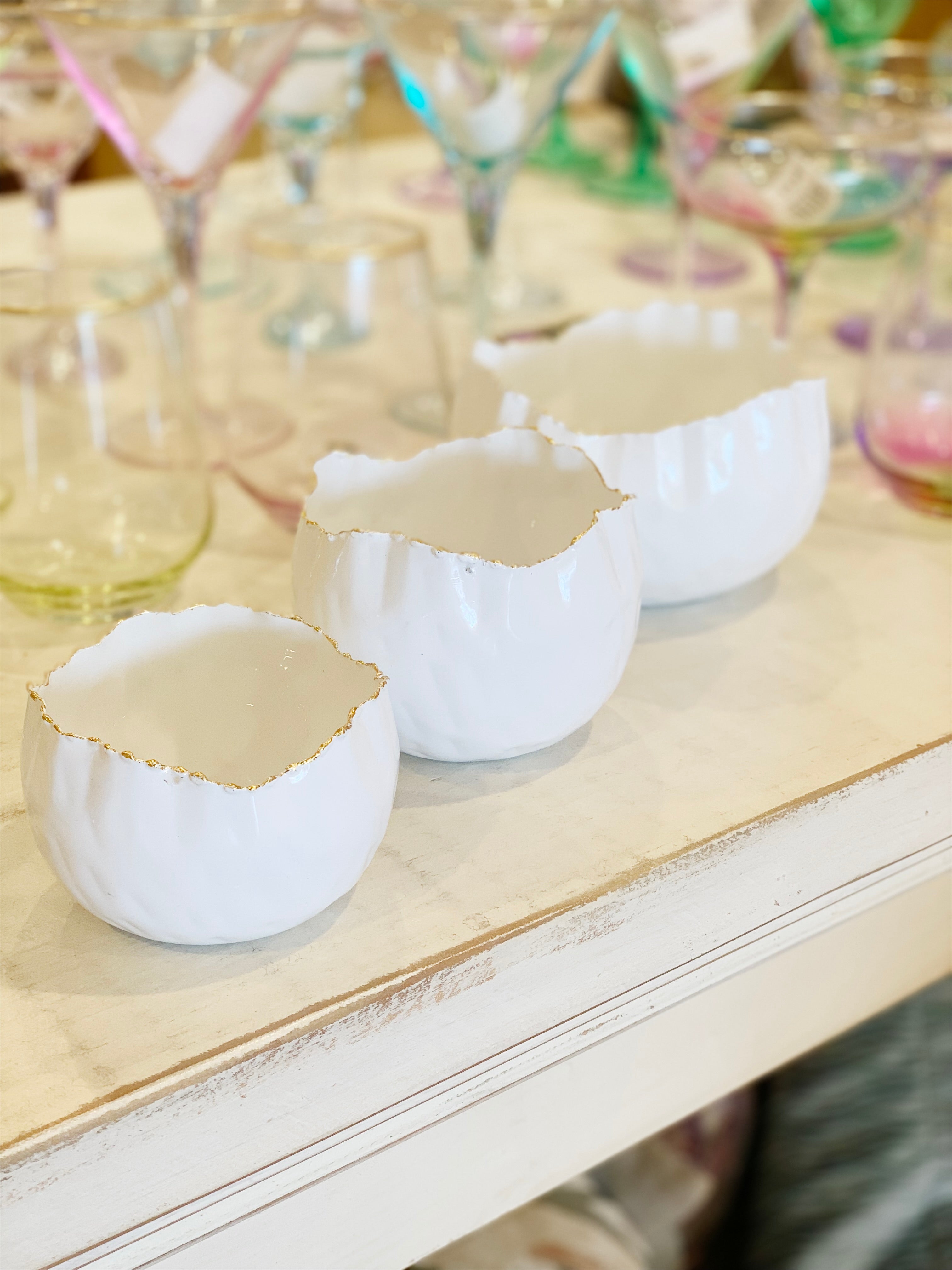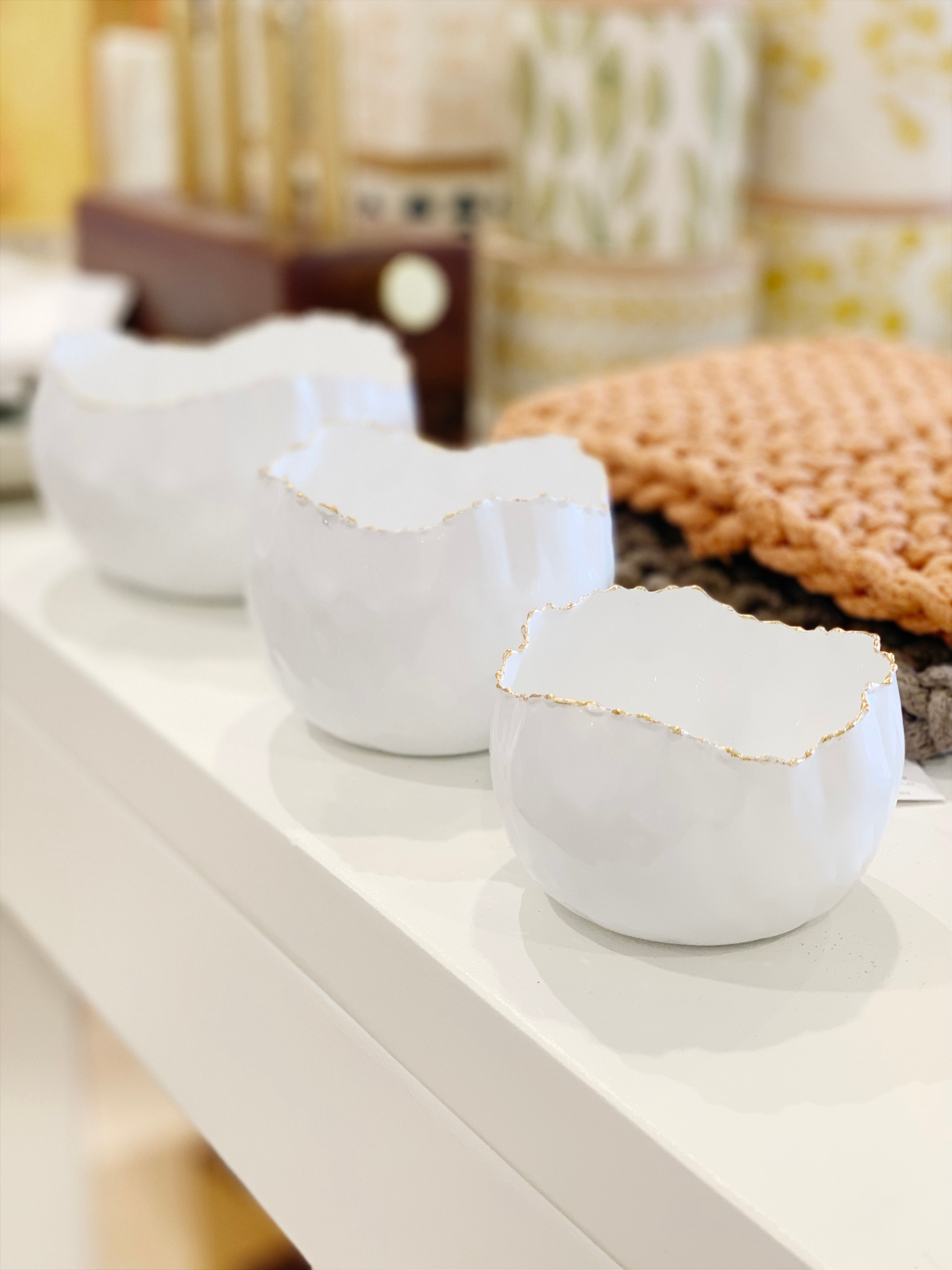 Scalloped White/Gold Bowls-Set of 3