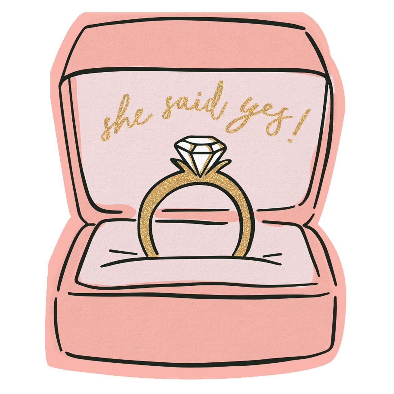 - Ring box shaped napkin with engagement ring graphic and silver foil design