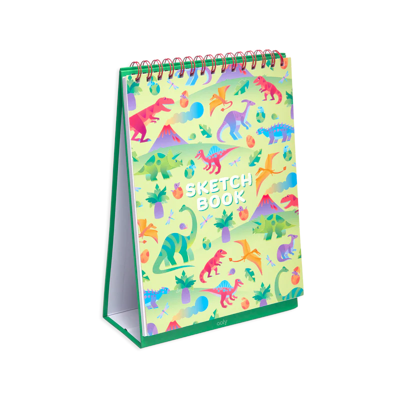 T-rex, brontosaurus and more dino pals make an engaging cover to a stand-out sketchbook. The Daring Dinos Sketchbook not only has room for plenty of sketching, it will display it too! This outstanding sketchbook has its own easel-type stand built right in. With the fun laminated accented dino-terrific cover, inspiration starts here!