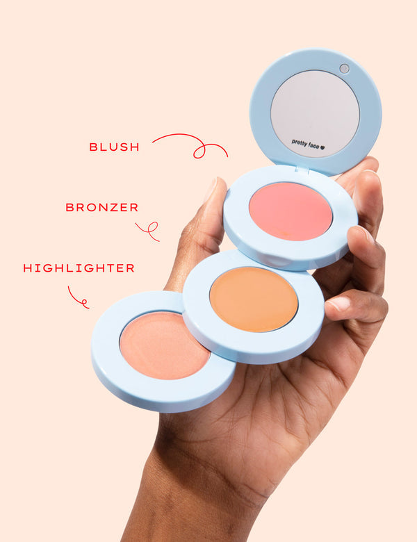 What is it? A bestselling 3-in-1 stackable compact that packs a blendable cream blush, bronzer, and highlighter for a complete, natural look.