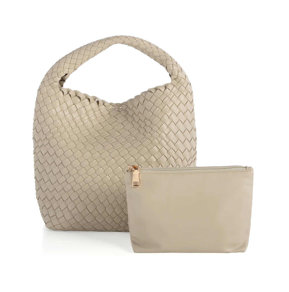 Give your handbag collection a sleek update with Blythe Mini Hobo. This hobo features a smooth vegan leather body, and woven texture, adding dimension to this sophisticated bag. Measuring L 9" x W 4" x H 9", the Blythe Mini Hobo is equipped with a single shoulder strap and removable top zip pouch, perfect for all your smaller items. This timeless bag is sure to be a favorite of yours for seasons to come.
