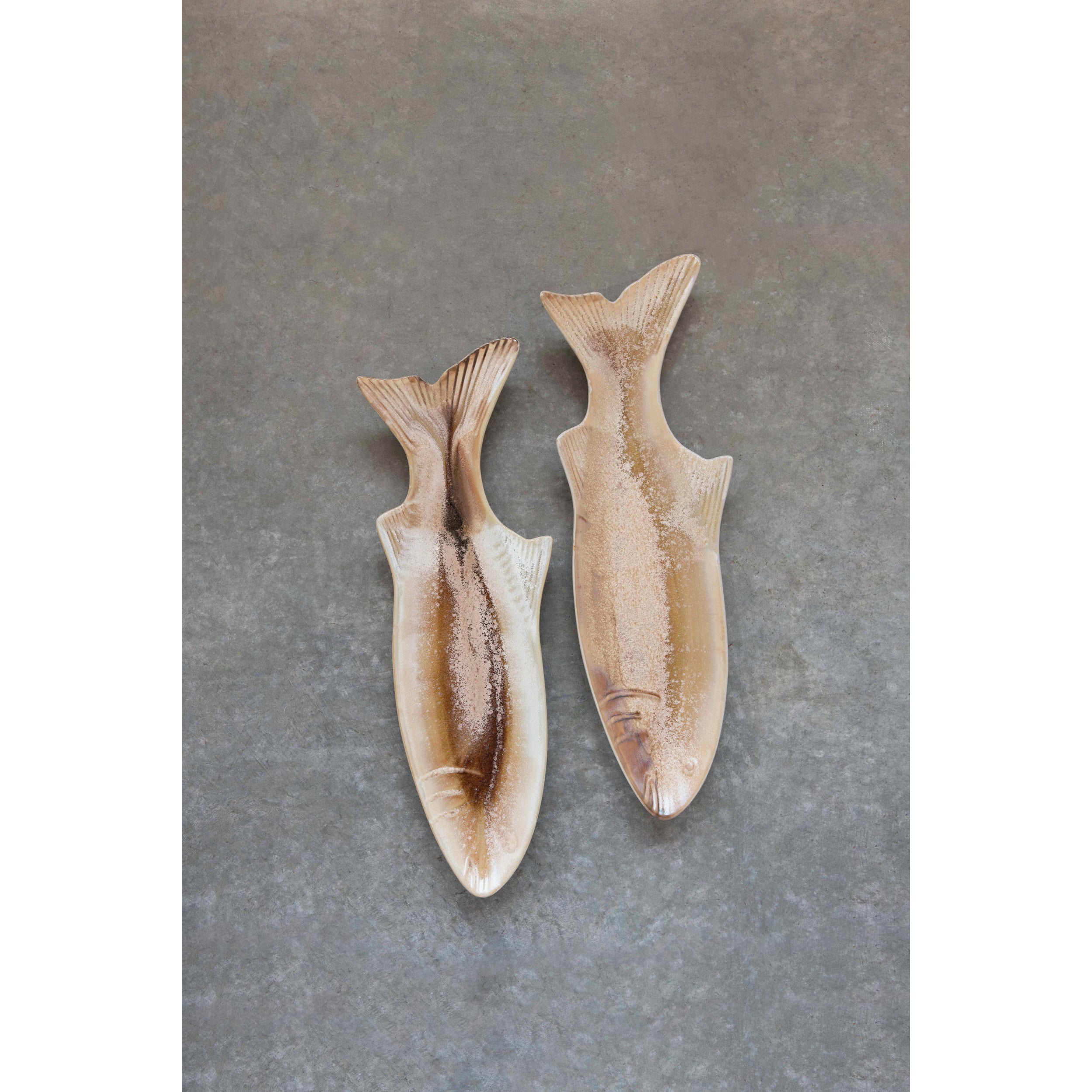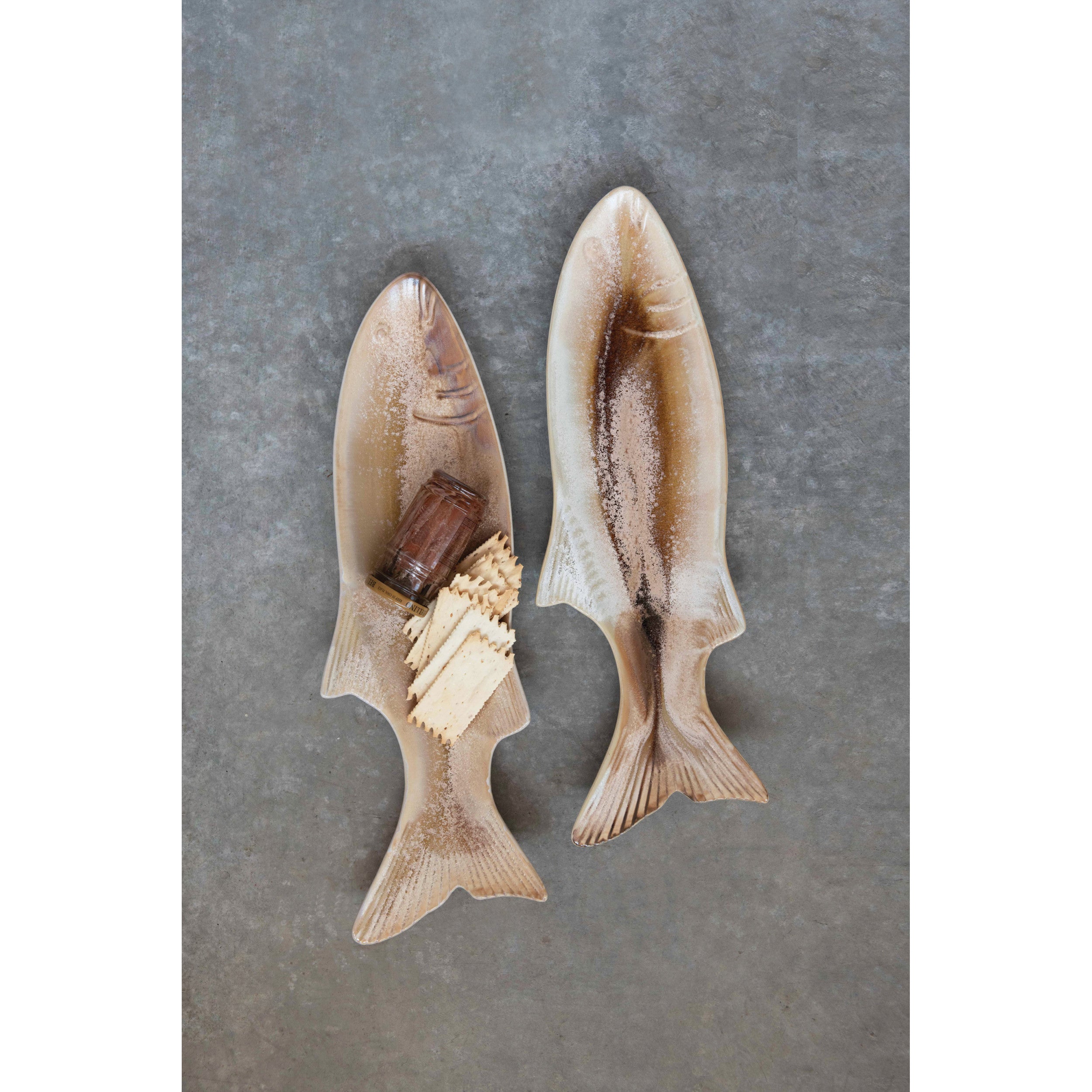 Take personal joy in serving family and friends with decorative plates. This fish shaped plate is unique and is perfect for your next catfish or tilapia meal. It has a reactive glaze finish which creates unique character during the finishing process and accomplishes a one of a kind design within each piece.