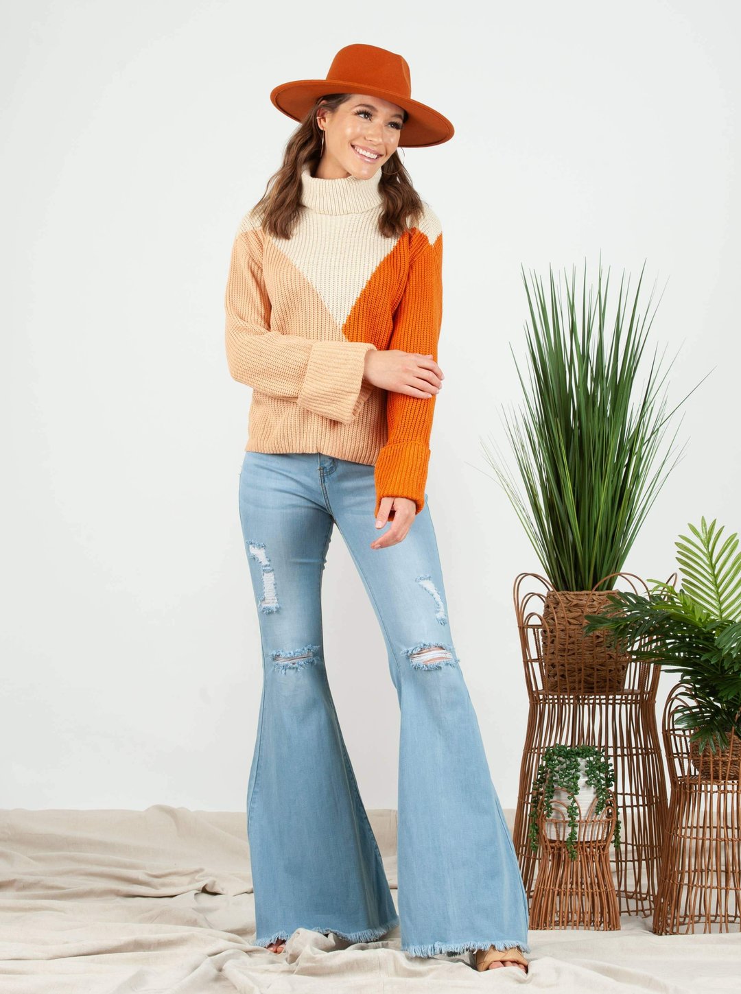 Tan/Orange Turtleneck Sweater