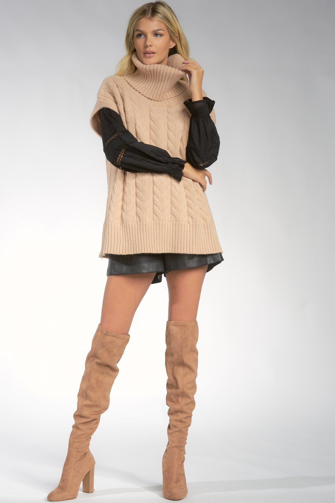 Blair sweater is a sleeveless knit with a chunky cowl neck. Combine chic and comfortable while adding a relaxed shape to any cold-weather look. Runs oversized, size down if preferred.