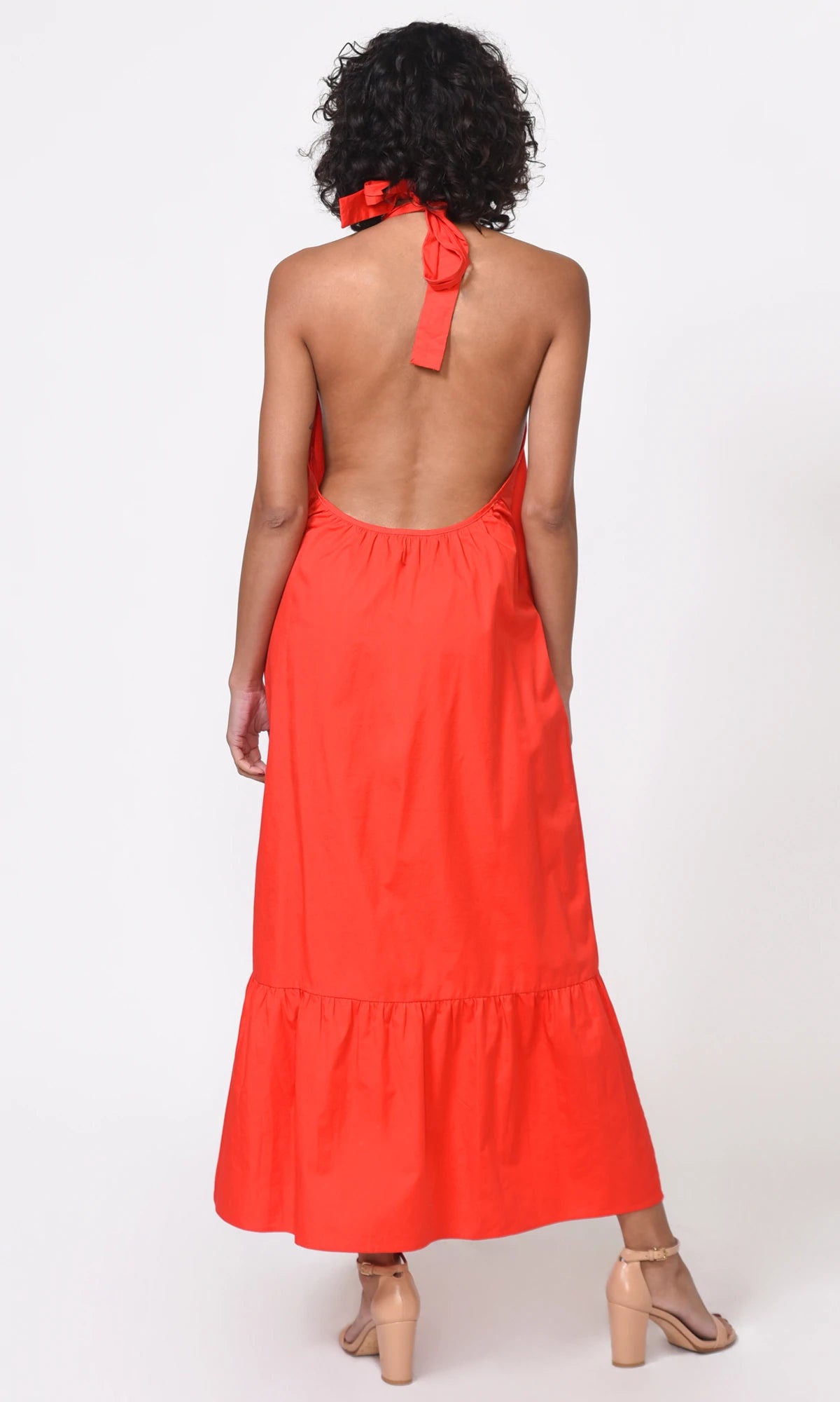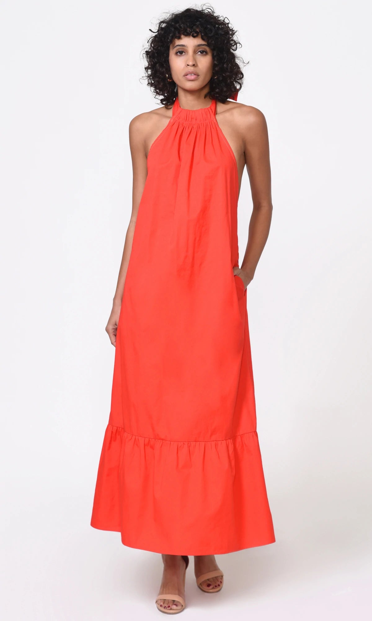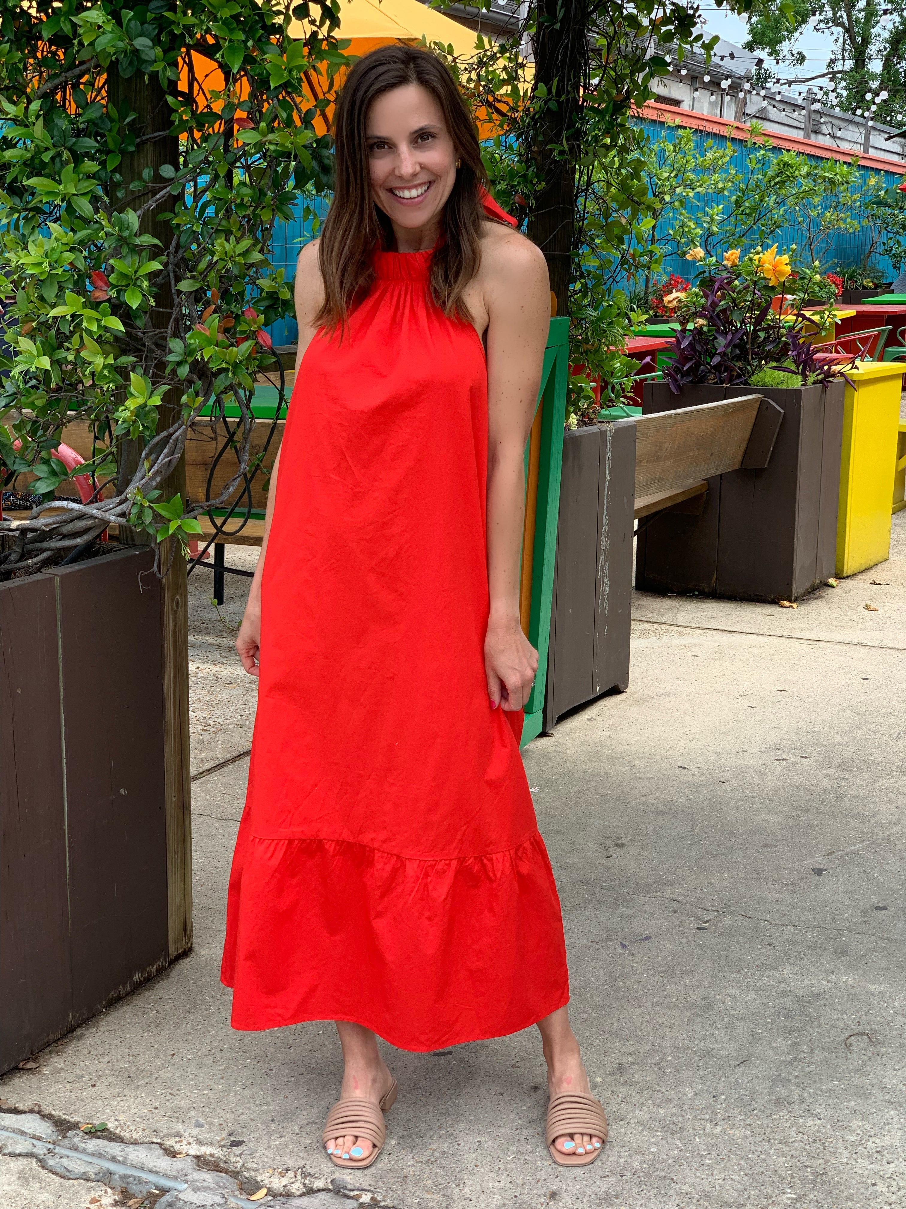 Tomato Halter Poplin Rylie Midi Dress