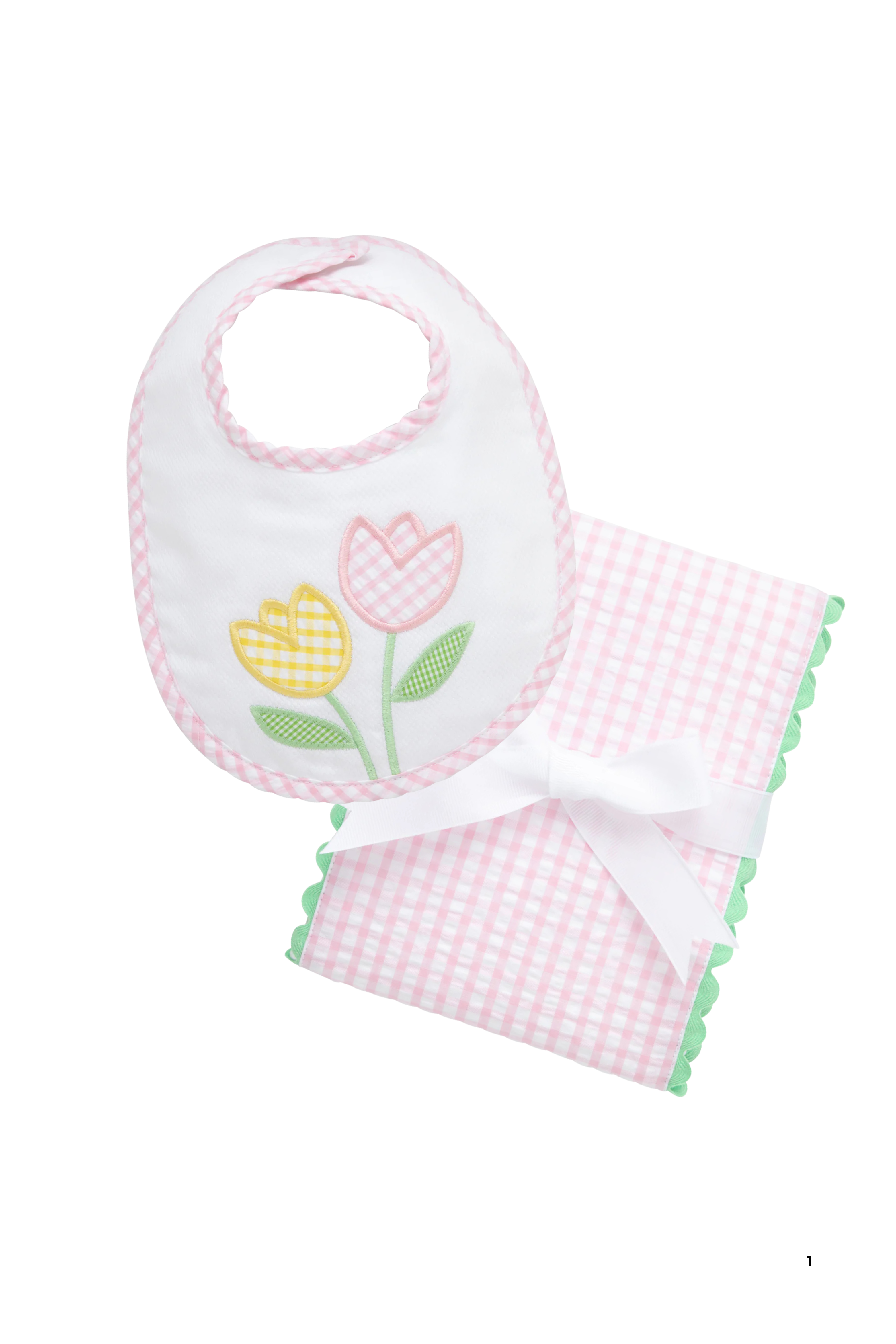 Our best-selling size bib. The front features one of our signature appliques and the back is made of 100% cotton terry. The thickness of our bibs keeps babies' clothes clean and the terry back can be used for wiping mouths and taking care of any other feeding mishaps.