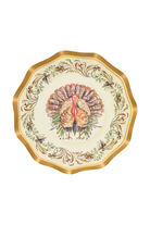 These wavy edged appetizer bowls feature stunning metallic gold accents and a beautifully illustrated turkey at the center, making them a festive and charming addition to any Thanksgiving table or fall celebration.