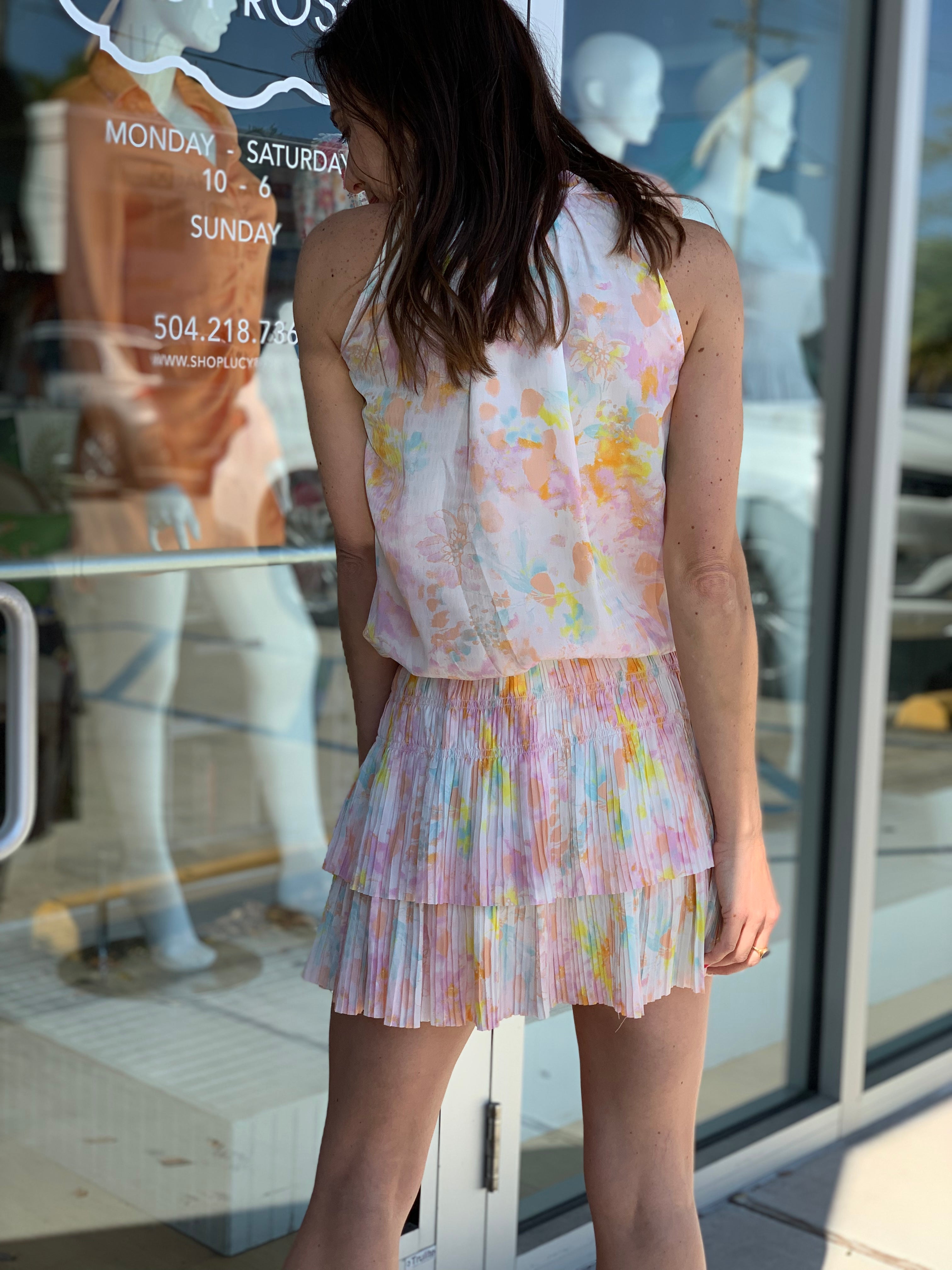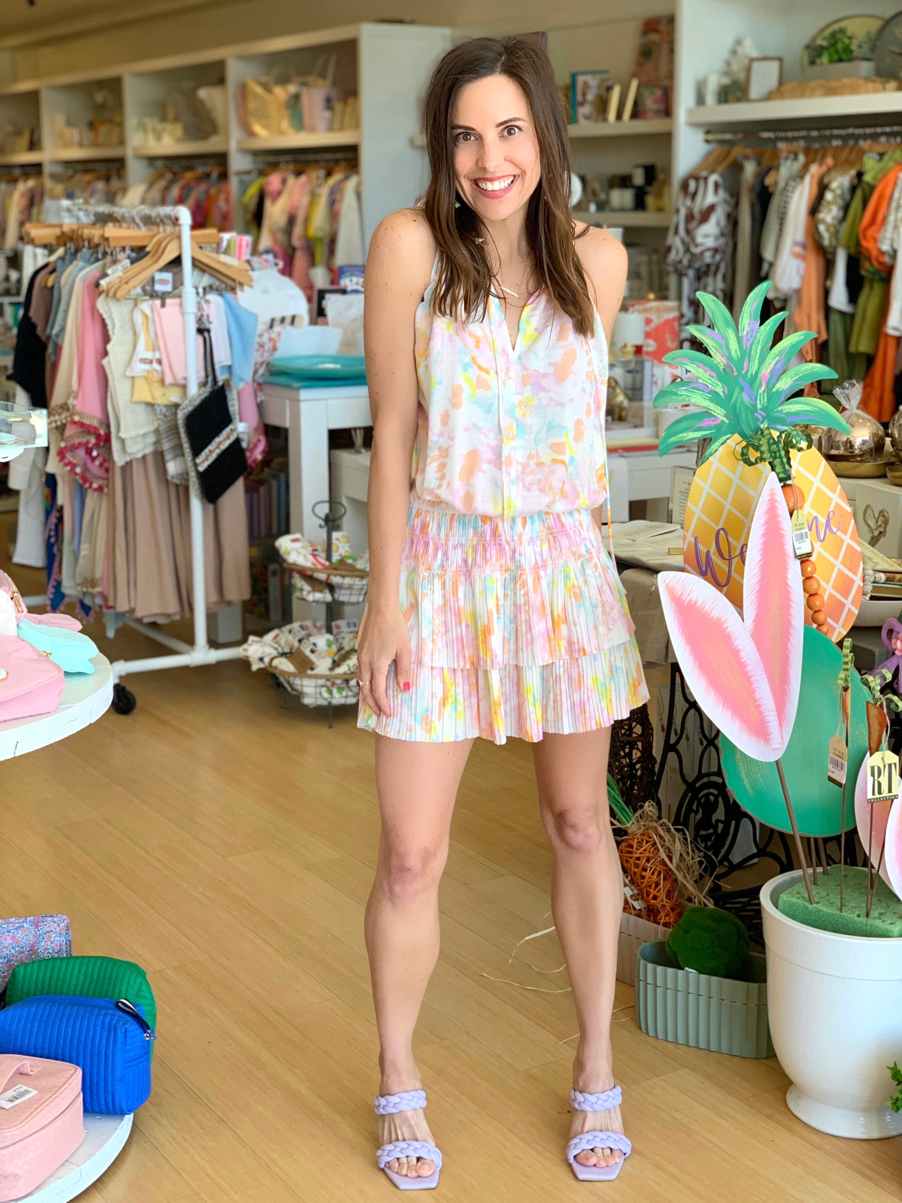 Watercolor Floral Ruffle Pleated Mini Dress