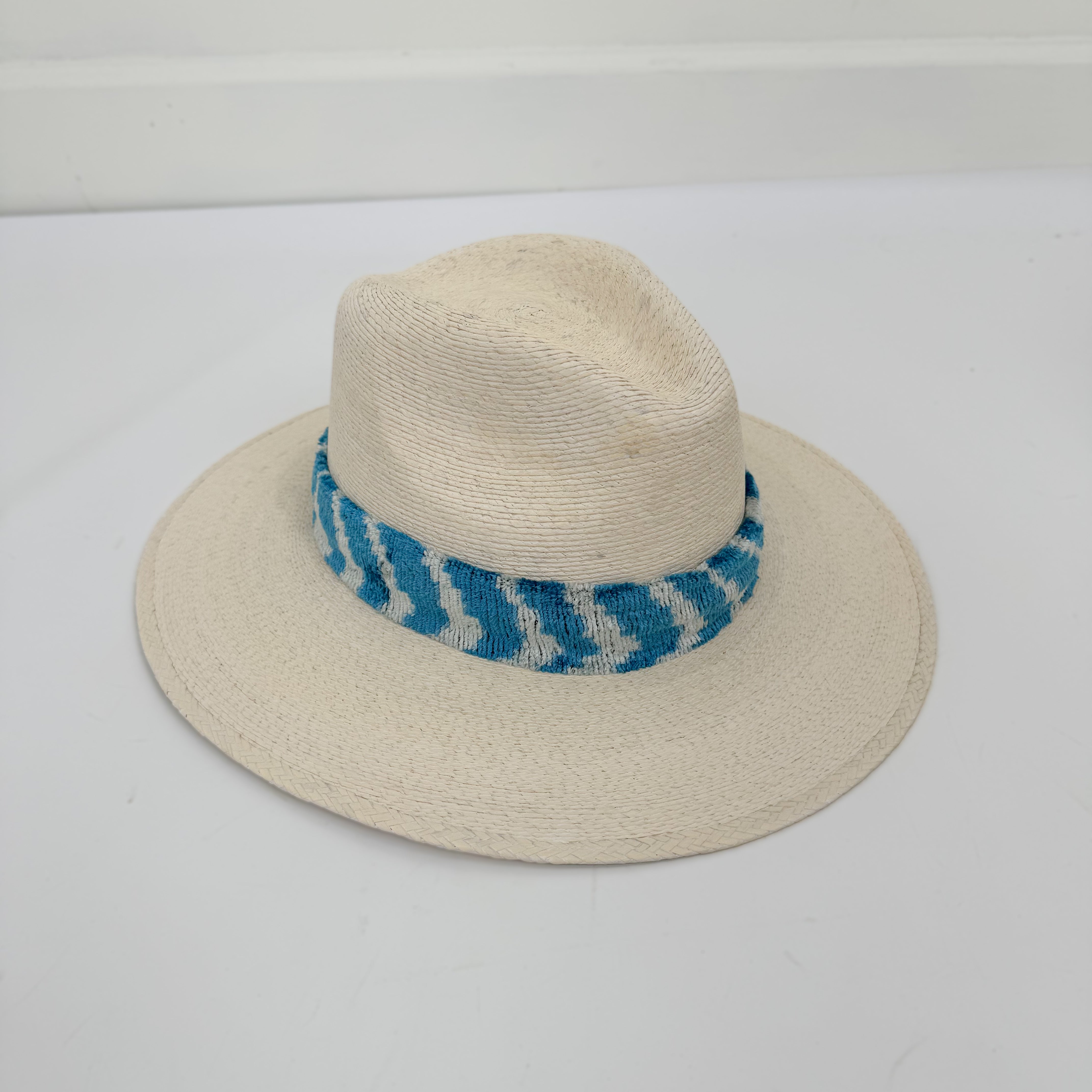 White/Blue Velvet Ikat Band Hat