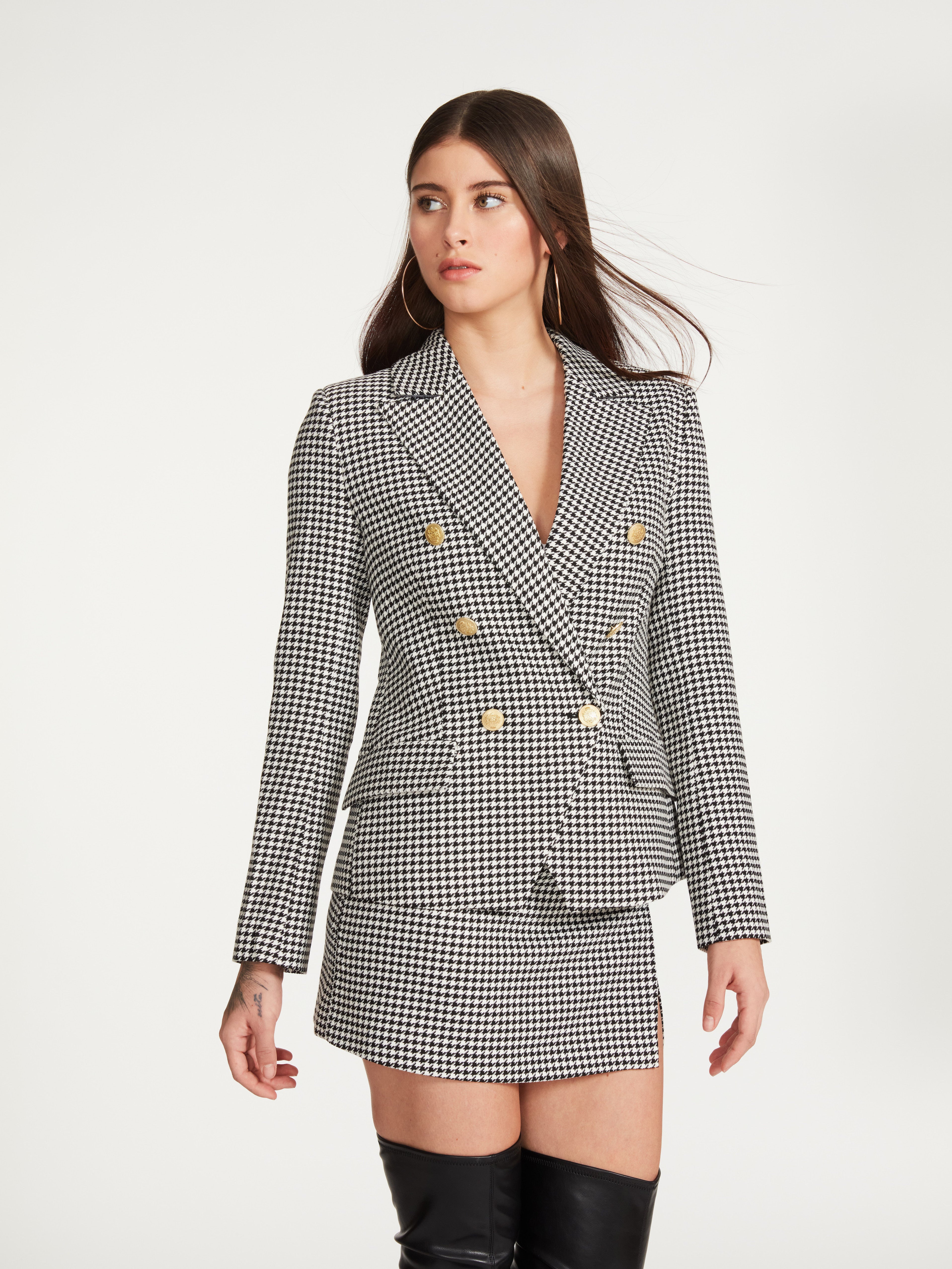 White Houndstooth Naomi Blazer
