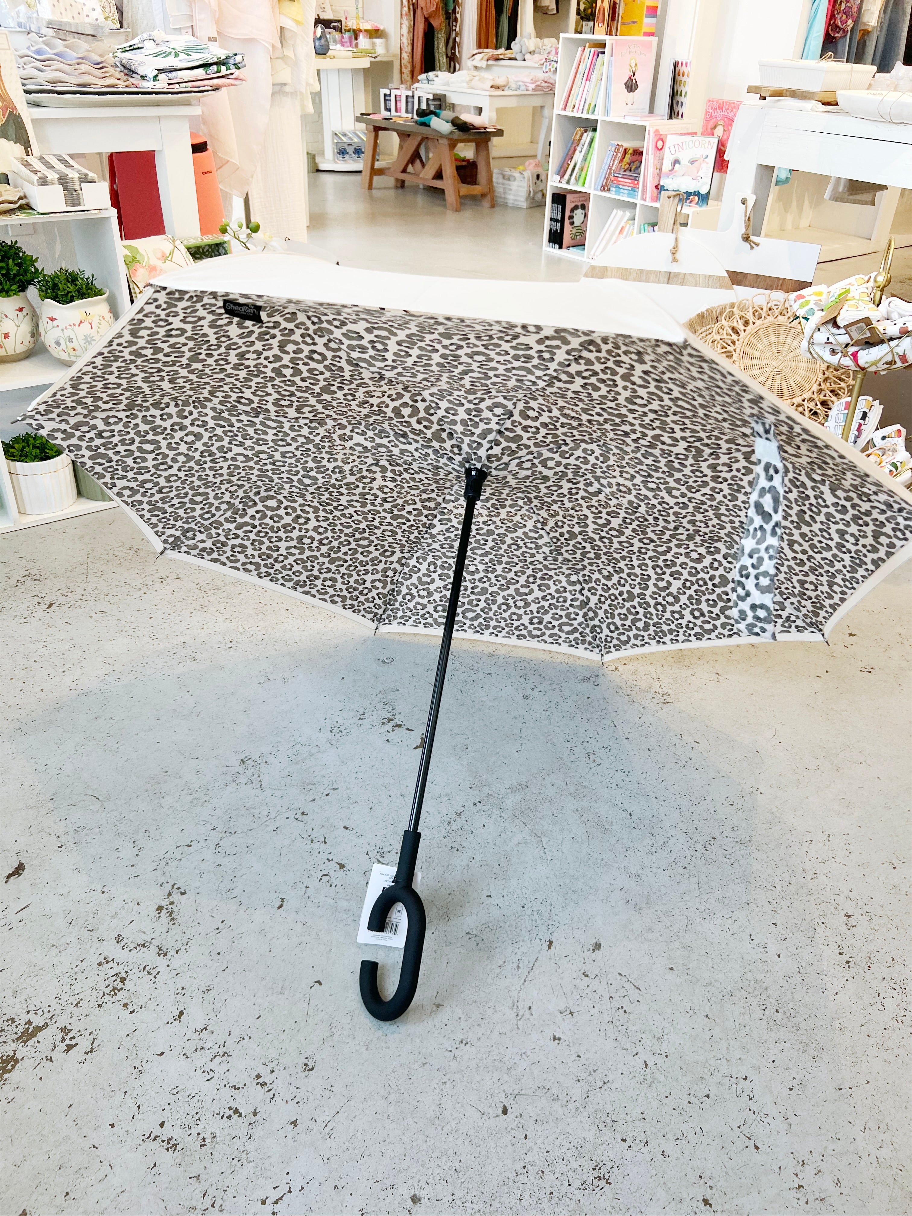 White/Leopard Reverse Closing Umbrella