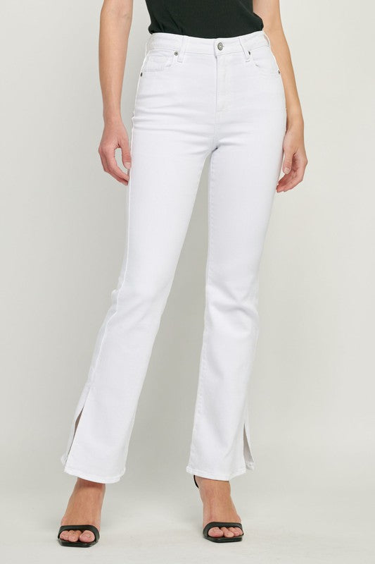 White Side Slit Bootcut Jeans