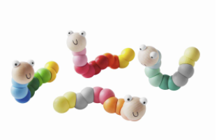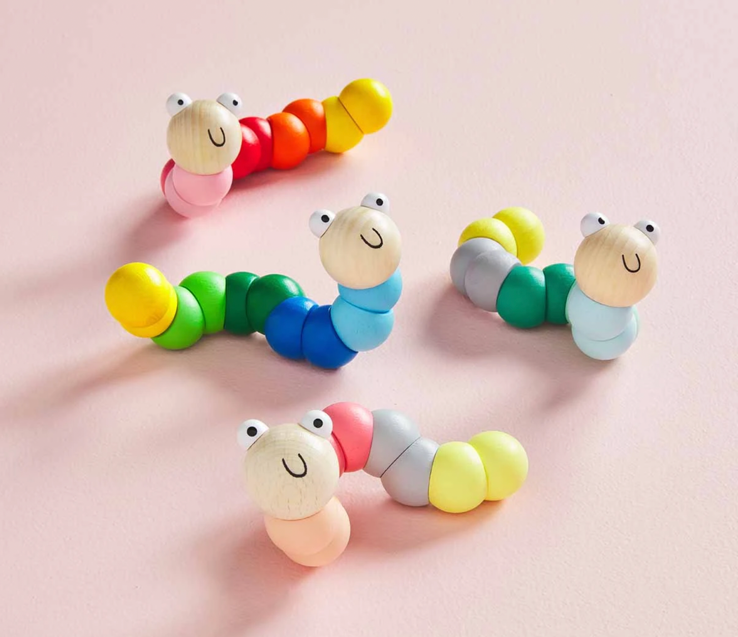 Wooden worm twists and turns for creative and sensory play. Ages 10M+.