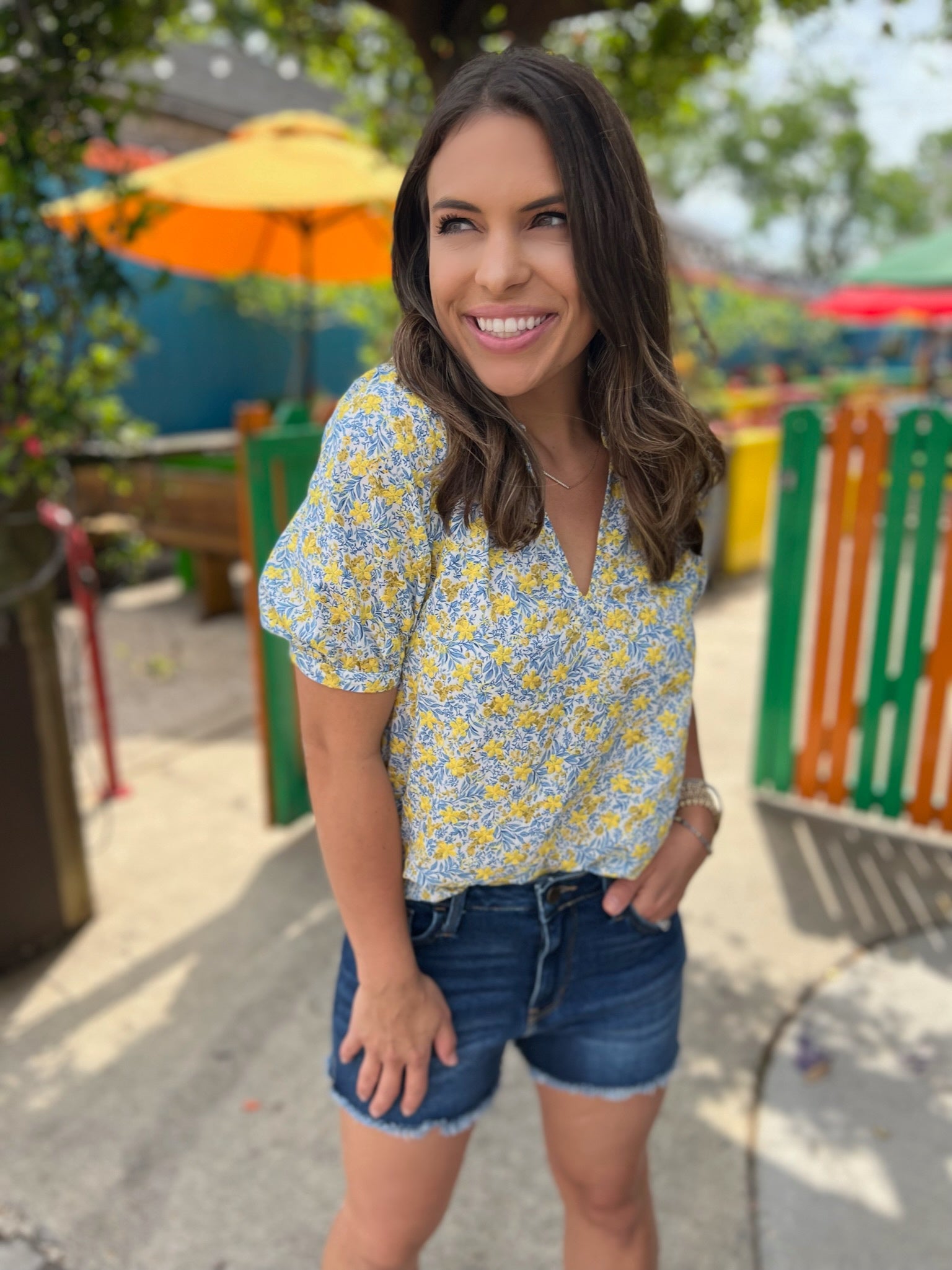 Yellow/Blue Embroidered Ruya Top