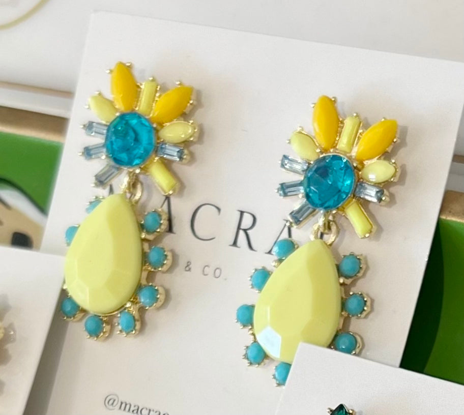 Yellow Rhinestone Geo Dangles