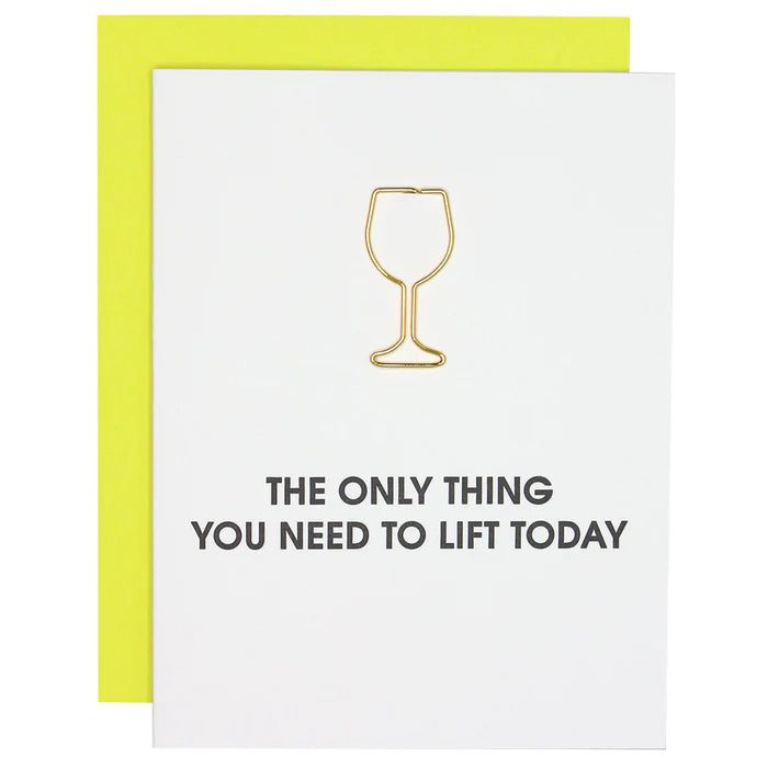 Our "Only Thing You Need To Lift Today" card is letterpress printed on a vintage printing press in sunny California. Card includes a heavy duty bottle paper clip.
